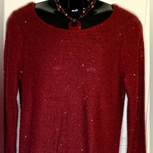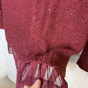 XL Burgundy/ Maroon Sweater with embedded same color sequin and sheer material at the bottom.