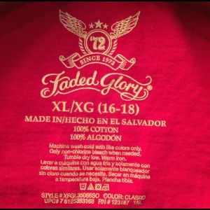 Women’s Faded Glory Red Tee Size Jrs XL