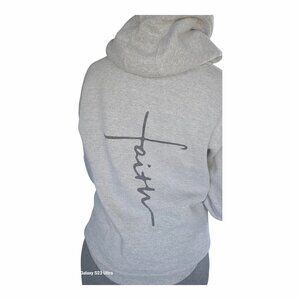 Embrace comfort and inspiration with our Women's Gray Faith Hoodie. Crafted from a soft, cozy blend of cotton and polyester, this hoodie offers a relaxed fit that's perfect for everyday wear. Featuring a bold "Faith" design, it serves as a reminder to stay grounded and positive. Whether you're out for a walk, running errands, or simply lounging at home, this hoodie combines style, warmth, and meaningful messaging to keep you feeling empowered and confident all day long. Ideal for layering, its versatile gray color pairs effortlessly with any outfit!