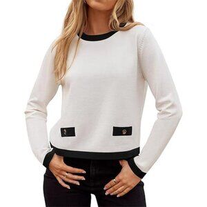 MATCHES: A timeless crewneck pullover sweater that never goes out of style. The classic color block design can be paired effortlessly with skirts, jeans, pants, high heels, and handbags for a sophisticated look or layered for added warmth.