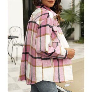 Women's Fall Plaid Shackets - Button Down Long Sleeve Casual Shirts 2024, Pink