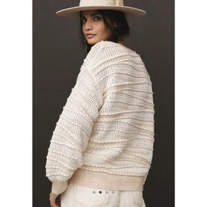 Womens Fall Sweater Anthropologie Pullover Open-Stitch Ivory Neutral XS New 1399