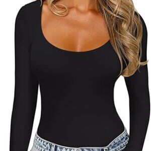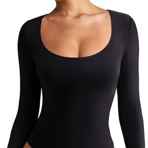 Womens Fall body suite Basic Scoop Neck Long Sleeve Leotards Sexy Double Lined