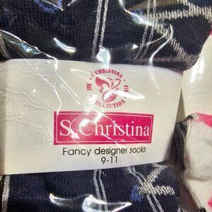 Adorable midcalf socks sizes 9-11, brand new 12 pack in packaging. Multiple colors with shoe lace design and white toe and heel.