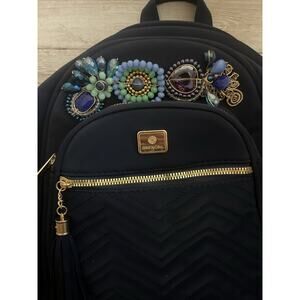 Womens Fancy MiniBackpack Navy Beaded Small Jeweled Purse Rare Crystals Stunning