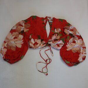 Womens Farm Rio Red Floral Crop Top XS