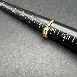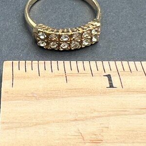 Womens Fashion Band Ring Gold Tone Two Row Clear Crystal Size 8 3/4
