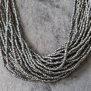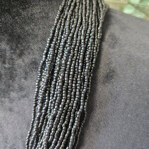 Womens Fashion Black Beads Multiple Strand Layered Necklace Jewelry.