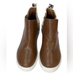 Women's Fashion Booties Pull On Coffee/Snakeskin Size-38/7 EUC