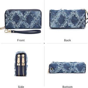 Product details Fabric type Jean Care instructions Wet Wipe Clean Origin Imported About this item Made with soft PU leather and a gold-tone metal zipper. Durable and wear-resistant, yet soft to the touch. Includes a detachable wristlet strap. Equipped with a double zipper closure and two main compartments. Contains 8 card slots, 2 large pockets, 2 checkbook compartments, and an interior zipper pocket that can hold most large smarts. Compact and practical, measuring 7.6 x 3.9 x 1.5 inches with a weight of 0.5 lb. Comes with a 7.5-inch wristlet strap for easy carrying. Designed for everyday, travel, and events. Balances functionality and style to meet various needs. We are committed to providing support. For any questions or concerns, please contact