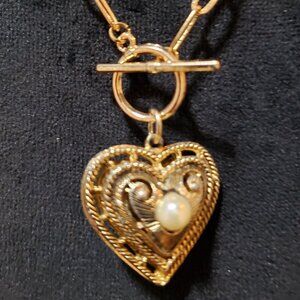 Womens Fashion Gold Tone Paper Clip Chain Heart Pendant Necklace w/ Toggle Clasp.