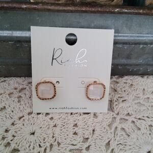 Style: authentic homaica marble, pearlescent champagne white color, stud earrings, lightweight, gold tone