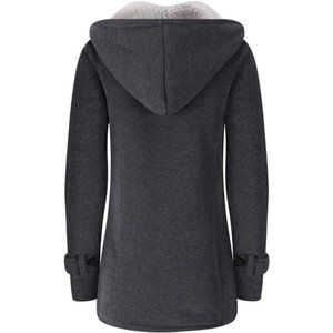 Womens Fashion Horn Button Fleece Thicken Coat with Hood Winter Warm Jacket