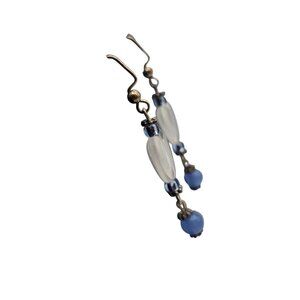 Women's Fashion Jewelry Clear Heart Shaped Blue Beaded Dangle Drop Hook Earrings