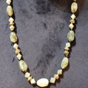 Womens Fashion Lemon Jasper Faceted Stones Haematite Spacers Necklace w/ Lobster.