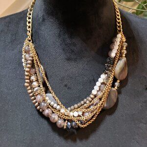 Womens Fashion Multicolor Beads Multi Strand Collar Necklace with Lobster Clasp.
