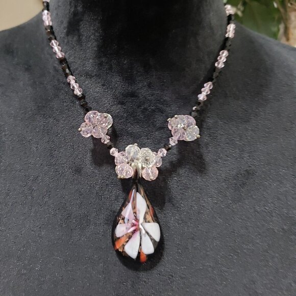 Womens Fashion Multicolor Glass Stone Floral Pendant Glass Beads Collar Necklace