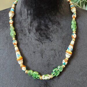 Womens Fashion Multicolor Krobo Beaded Necklace Jewelry with Hook & Eye