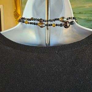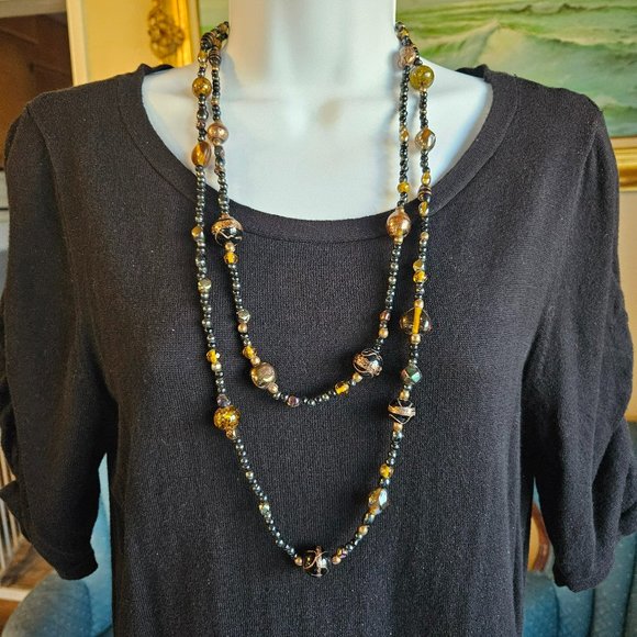 Women's Fashion Necklace EUC Amber Black Bronze Colored Beads 58"
