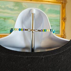 Women's Fashion Necklace Electric Blue Lime Brass Tone 26".