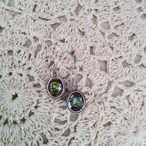Grab this fashion silver tone multicolor rhinestone oval dangle earrings now.