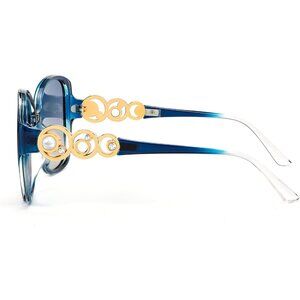 Women's Fashion Square Sunglasses Blue Frame Pearl Sparkling Eyes Protection