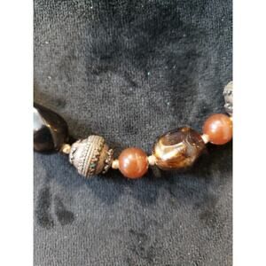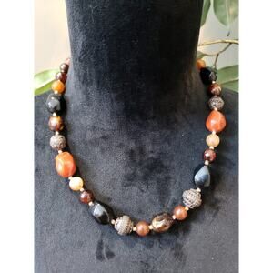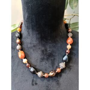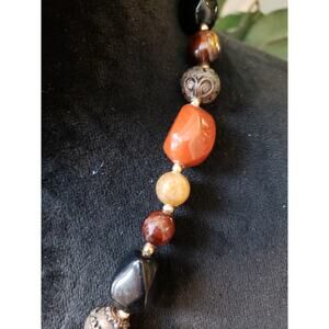 Womens Fashion Tribal Chunky Carnelian Coral Verde Marble Ornate Beads Necklace.