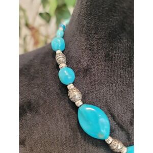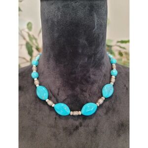Womens Fashion Turquoise Gemstone Statement Beaded Necklace Handmade Jewelry