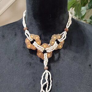 Womens Fashion White Beaded Boho Style Necklace Jewellery with Lobster Clasp.