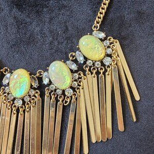 Womens Fashion Yellow Rhinestone Fringe Bib Necklace Jewelry with Lobster Clasp.