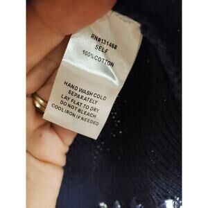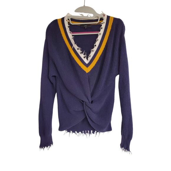 Women's Fate Navy V-Neck Knotted Cotton Sweater w/ Frayed Trim | Size Small