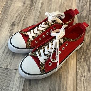 Women’s Faux Converse Style Shoe Red and Leopard Print