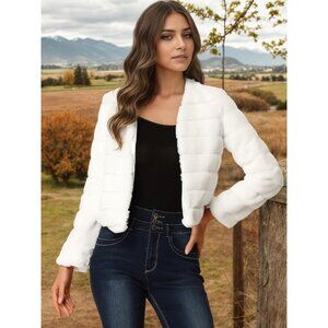 Women's Faux Fur Coat Long Sleeve Cropped Fluffy Jacket Collarless Casual Winter