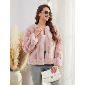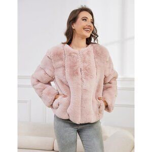 Women's Faux Fur Coat Long Sleeves Open Front Warm Winter Cropped Jacket Pink