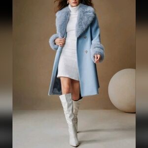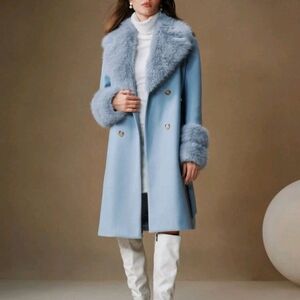 Women's Faux Fur Collar Thick Warm Belted Woolen Coat