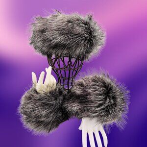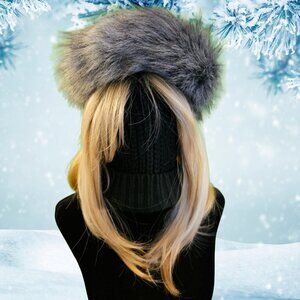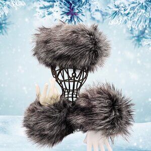 Add instant elegance and warmth to your winter wardrobe with this women’s faux fur accessory set, featuring a hat band/ear warmer and two matching wrist cuffs. The plush faux fur has a beautiful gray-black blend that mimics natural fur for a chic, timeless look.