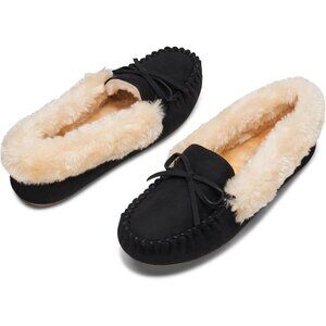 ULTIMATE COMFORT & COZY WARMTH: Indulge in unparalleled comfort with these moccasin slippers, featuring plush shearling faux fur lining and lightly padded foam insoles. Designed to keep your feet warm and comfortable all day, they are perfect for lounging at home or relaxing after a long day.