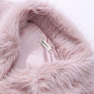 Women's Faux Fur Zip-Up Cropped Jacket Long Sleeve Warm Winter Coat Pink