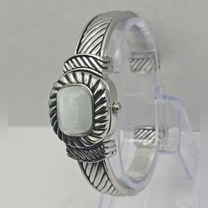 Womens Faux Jewel Watch Two Tone Hidden Dial Flip Top Bracelet Cuff New Battery