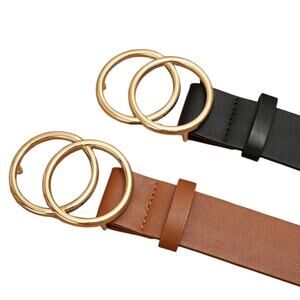 Women's Faux Leather Belt with Double O Ring Bucklet - 2 Pack - Size XXL