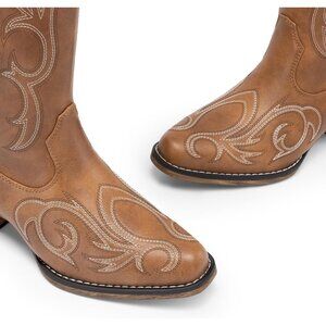Molded Sole: The molded TPR outsole offers reliable grip and resists wear, making these cowgirl boots perfect for trips on different terrains. Plus, the distressed design at the bottom enhances retro flair.