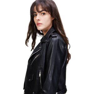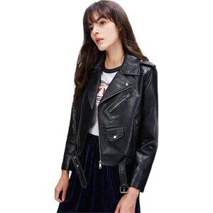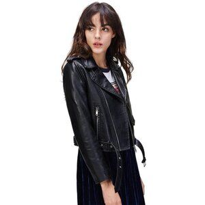 Women's Faux Leather Motorcycle Jacket Coat Black2