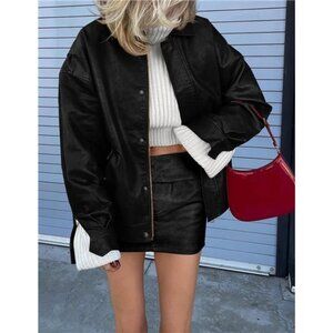 FASHION FAUX LEATHER JACKET COATS: This Trendy Outerwear Piece Is Designed to Elevate your Everyday Look with its Chic and Edgy Vibe. The Long Sleeves and Loose Fit Provide a Comfortable and Relaxed Feel. The Moto-Inspired Design Adds a Touch of Attitude, While the Zipper Closure Provides a Snug Fit. Side Pockets Add Practicality, Allowing Convenient Storage without Compromising the Coat's Streamlined Look