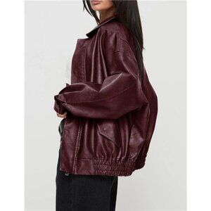 Women's Faux Leather Motorcycle Jacket Trendy Burgundy