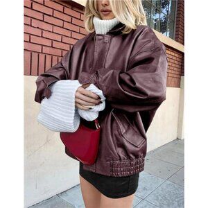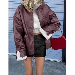 FASHION FAUX LEATHER JACKET COATS: This Trendy Outerwear Piece Is Designed to Elevate your Everyday Look with its Chic and Edgy Vibe. The Long Sleeves and Loose Fit Provide a Comfortable and Relaxed Feel. The Moto-Inspired Design Adds a Touch of Attitude, While the Zipper Closure Provides a Snug Fit. Side Pockets Add Practicality, Allowing Convenient Storage without Compromising the Coat's Streamlined Look