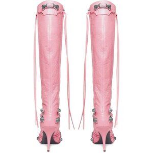 Women's Faux Leather Pink Stiletto Knee High Pointed Toe High Heel Zipper Boots