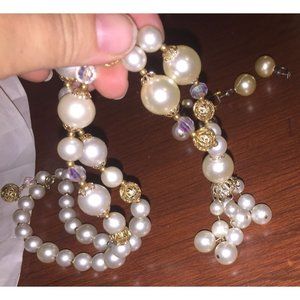 Womens Faux Pearl and Crystal Drop Necklace with 2 Pairs of Earrings