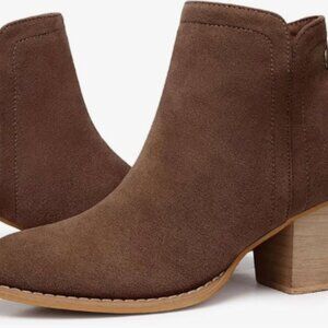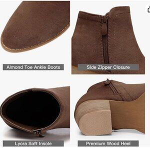 Women’s Faux Suede Ankle Boots, Chunky Low Heel Almond Toe Booties