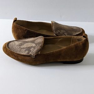 Women's Faux Suede Camel & Snakeskin Flat Loafer Size 9