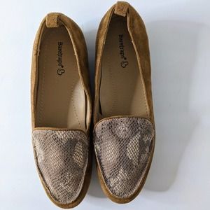 Baretraps Elliana Women's Faux Suede Camel & Snakeskin Flat Loafer Size 9